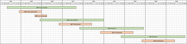 2-) Şuanda sürümleri yayınlanmış ve gelecekte yayınlanması beklenen .NET Core versiyonları