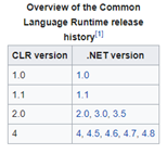 - CLR versiyion ve .NET versiyon tablosu